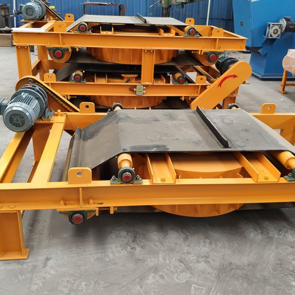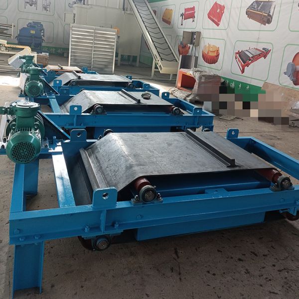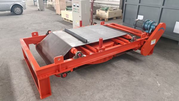 自卸式電磁除鐵器工作原理自卸式電磁除鐵器工作原理 自卸式電磁除鐵器包括機(jī)架和電磁除鐵器本體,機(jī)架上安裝有傳動(dòng)滾筒、從動(dòng)滾筒及托輥,傳